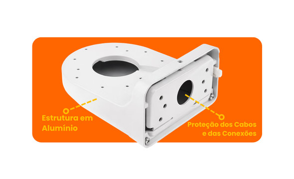 Fabricada em alumínio de alta resistência, suporta até 1 kg de carga, acomodando a maioria dos modelos de câmeras dome disponíveis no mercado. Seu material garante durabilidade mesmo em ambientes com variações de temperatura e umidade.